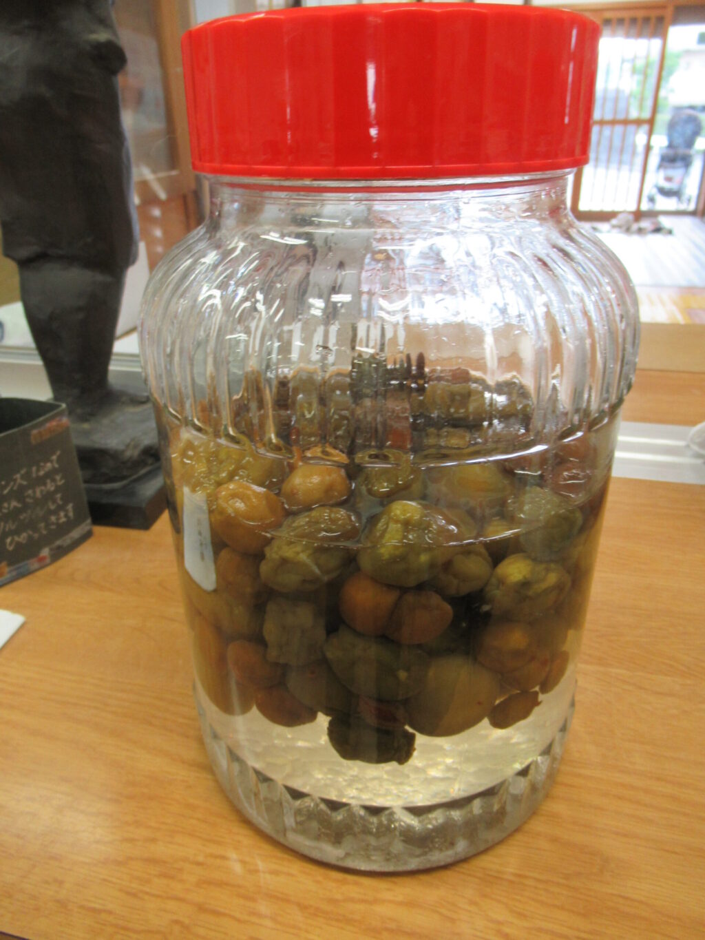 収穫した梅の実で、今年も梅ジュースを作りました。もうすぐ飲めるかな…