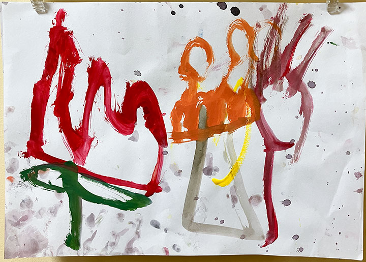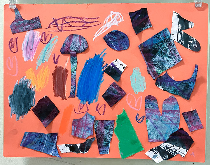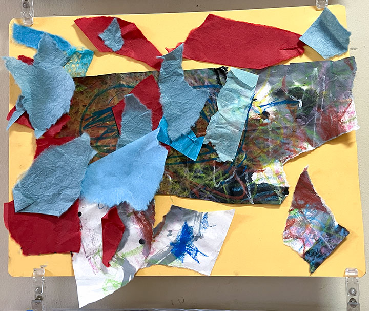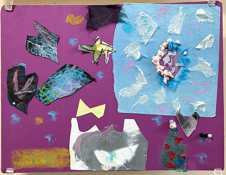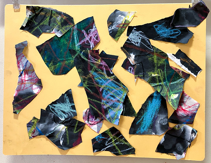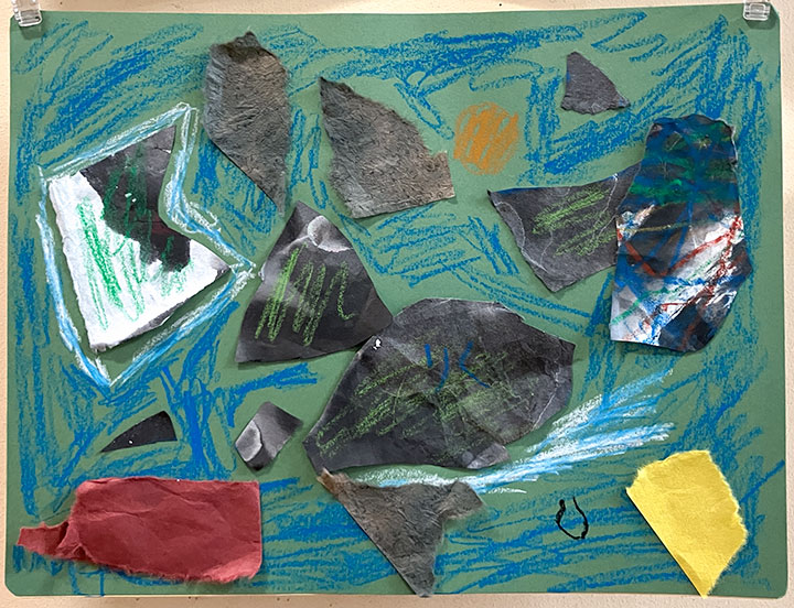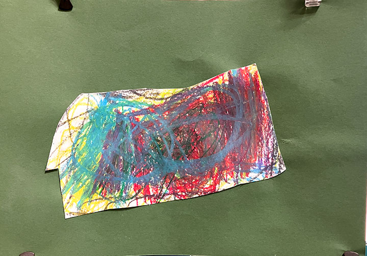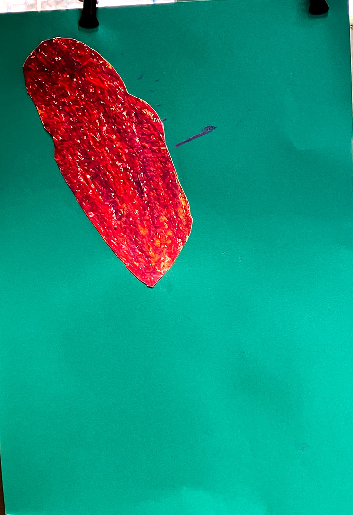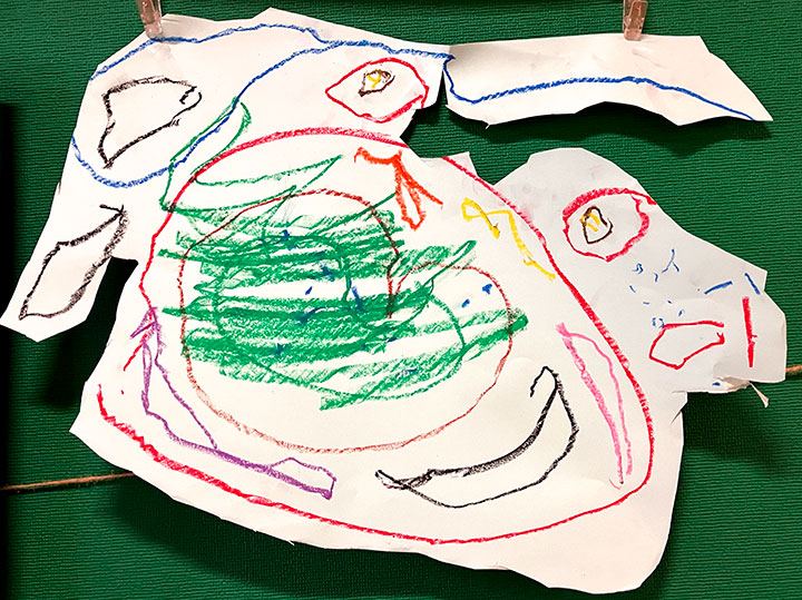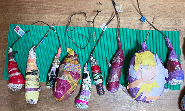 幼児クラスの子どもたちが作ったさつまいものオブジェ。思い思いのさつまいもの形を新聞紙を潰して丸めたものに、アルミホイルで包み固めました。そこに本物のツルを絡めて色とりどりのマスキングテープを巻いて自分だけのさつまいもを作りました。どんな味がするか食べてみたくなるような仕上がりです!