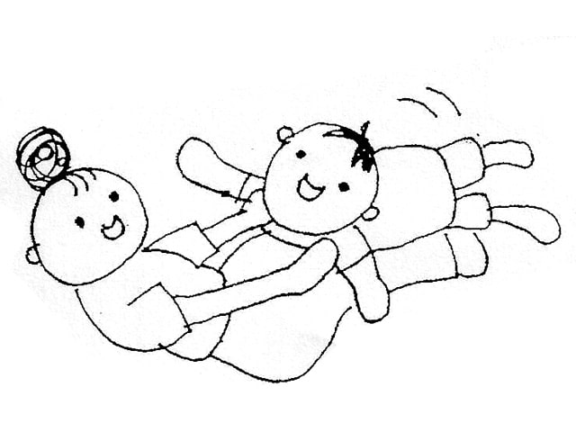 輪投げはそもそも大人たちの遊びで、庭先や客船のデッキで親しまれてきました。新聞紙で作った四次元ボールは、ドアの取っ手や椅子の背もたれ部分などにひっかけてみたり、本来のボールのように手で受けるだけじゃなくつかむというのがミソ。指先がまだ思うように動かない乳児や高齢者でもキャッチが楽なボールです。