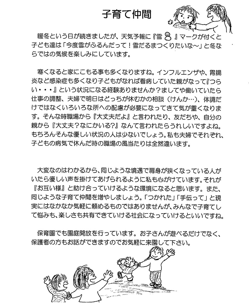 毎年行っていた離乳食講習会や地域の方たちとの交流をコロナウイルス流行のため、現在休止とさせていただいております。様々なパターンを模索しておりますが、密着が避けられない保育園という場所では難しいのが現状です。電話や個別でのご相談は受け付けております。また、離乳食の相談なども栄養士と一緒に出来ますので、お気軽にご連絡ください。