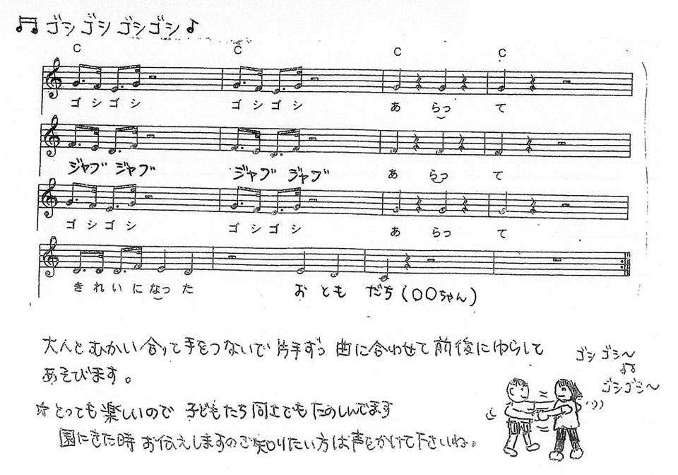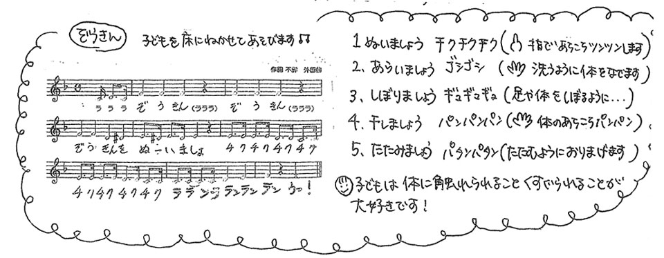 くまさんくまさんの歌に合わせてしぐさあそび。