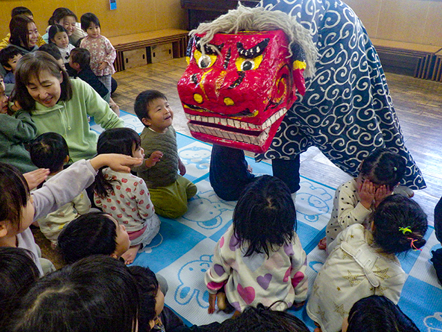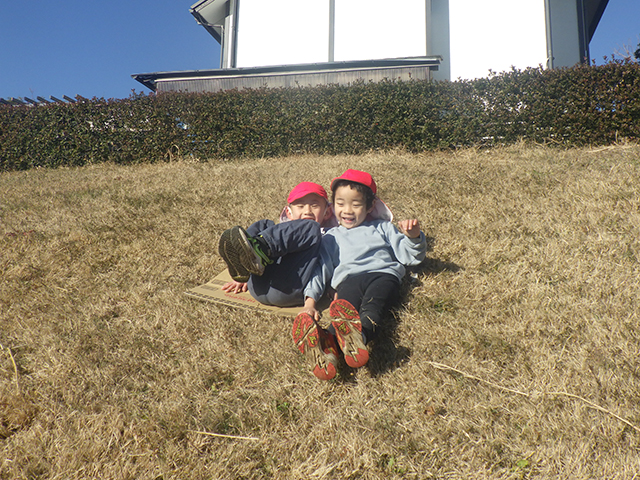 新しい年が始まりました。年末はいい天気が続きましたが、年明けから一気に冷え込み、園庭の地面は凍っては解け、凍っては解けを繰り返しています。こんな寒いときに外にでなくても…と思われるかもしれませんが、人間の体はうまくできているもので、寒い時は体をあたためようとする機能が働きます。冷たい外気に触れることで、体が熱を作り出し、代謝や血流を促進します。寒い冬だけでなく、暑い夏は逆に、暑さを放出するために汗が出ます。この日々の繰り返しで体温調節ができる体になっていきます。もちろん体調が悪いときには無理はしなくていいのですが、寒さに負けず、外に出ることは体づくりのために大切なことです。先日、2歳児が散歩に行ったとき、「今日は寒かったけど、子ども達がたくさん走ってたな…」と先生たちが話していました。『寒いときは体を動かせばあたたかくなる。』2歳児でも体で実感しているのでしょう。3歳児は散歩から鼻を真っ赤にして帰ってきました。着替えを済ませ、ホールに食事に来ましたが、手が冷たくてなかなか動きだせません。まずはみそ汁の入ったお椀に手をあて、そしてゴク。体が次第に温まります。心も体も温まってくると笑顔いっぱいになり、ご飯を頬張っていました。しばらく続く寒い冬。冬ならではの出会いを大切に、体をたくさん動かし、たくさん食べ、笑顔の絶えない毎日を過ごしていきたいです。