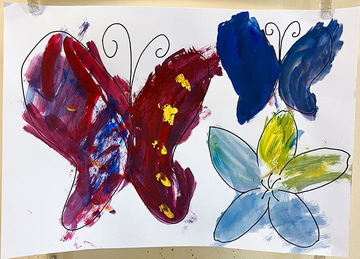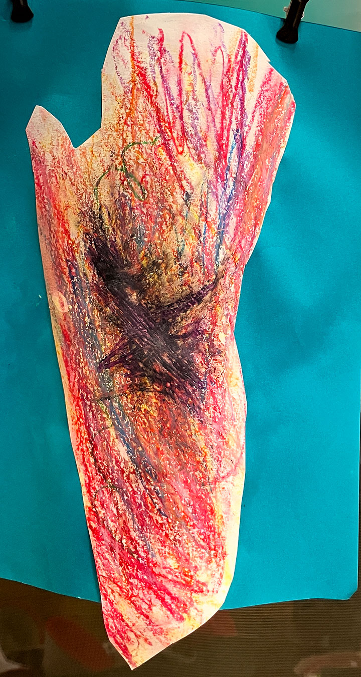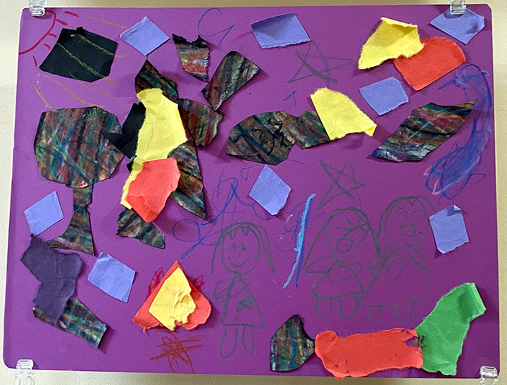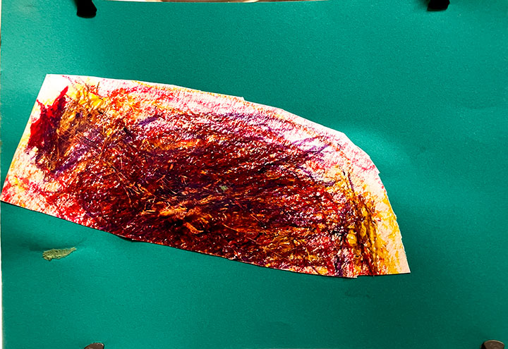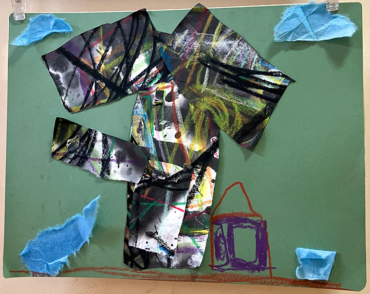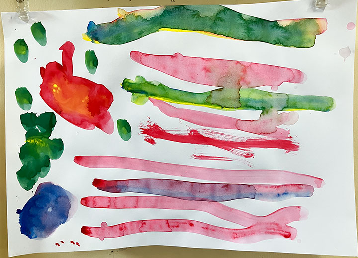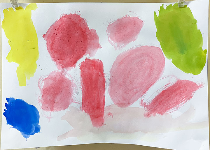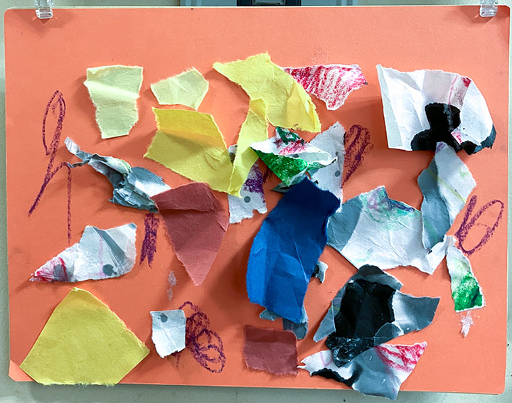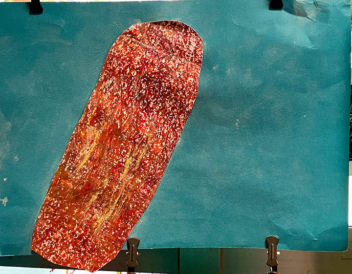 幼児クラスの子どもたちが作ったさつまいものオブジェ。思い思いのさつまいもの形を新聞紙を潰して丸めたものに、アルミホイルで包み固めました。そこに本物のツルを絡めて色とりどりのマスキングテープを巻いて自分だけのさつまいもを作りました。どんな味がするか食べてみたくなるような仕上がりです!
