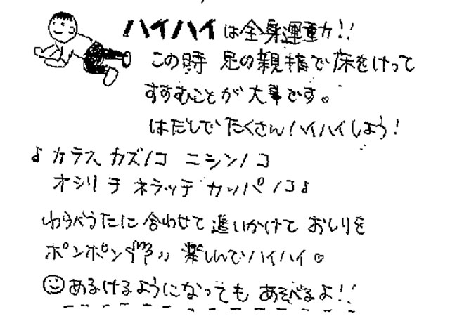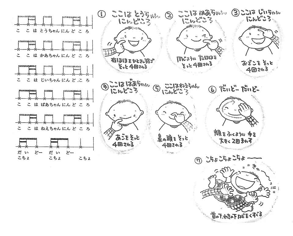 “にんどころ”とは、似ているところの意味です。右ほっぺはお父さん似、左ほっぺはお母さん似、おでこは、あごは…家族みんな似ている、みんなに愛されているんだよ、という気持ちがきっと赤ちゃんにも伝わるでしょう。