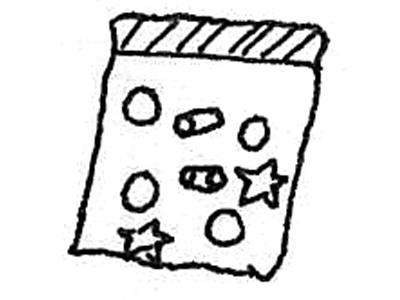 市販のお手玉もありますが、まずはありあわせの布を袋に縫って、小豆やプラスチックの粒などを入れて手作りしてみましょう。