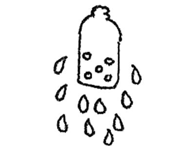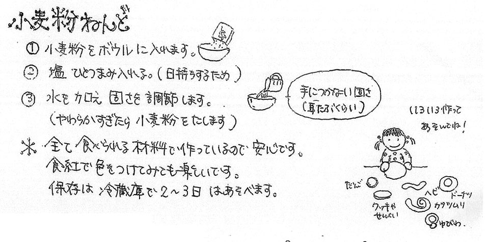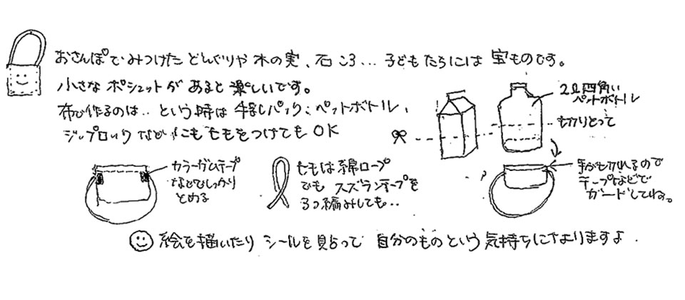 ジュース屋さんや、少し濃くして紙にも描くことができます。コップや袋などに入れていろいろなあそび方ができます。