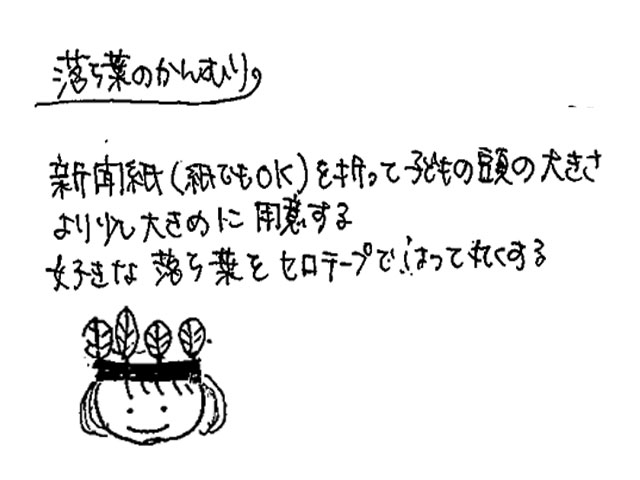 公園や園庭には様々な形や色の落ち葉やいろいろなドングリや木の実が落ちています。「わ〜キレイ」と思わず葉っぱを拾ったり、ドングリ拾いに夢中になる子もいます。お子さんと一緒に作って遊んでみてください。