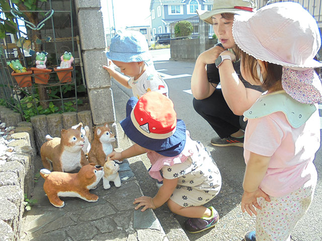 もう少し暑さが続くかと思いましたが、9月に入り朝夕は秋の風が吹きましたね。なかなか散歩に出られずうずうずしていた子どもたち。お散歩行くよ—!の声掛けにうれしそうな笑顔があふれています。誰かが出かけると、私も行きたい-!と門にへばりつきアピールする小さなクラスの子どもたち。秋は体を目一杯動かし、自然の中で、季節を感じながら過ごして行きます。