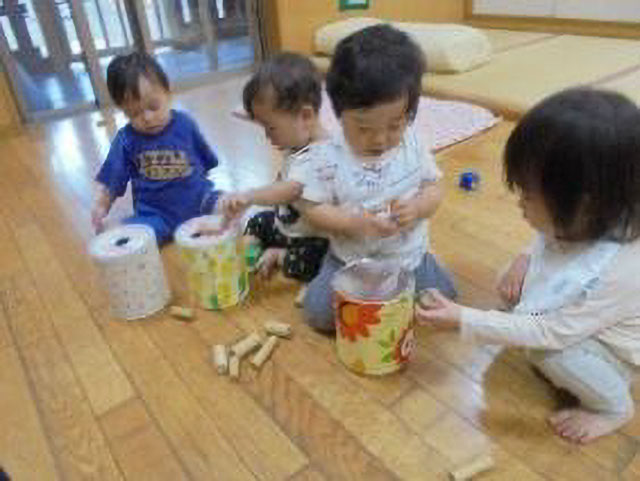 夏を超え急にお兄さんお姉さんになったうさぎ組。大好きな友だちと一緒にいれば何をやっても楽しい!見立て遊びが上手で、いろいろなものを小道具に使い、遊びを作っています。とはいってもまだまだ2歳児。甘えん坊のうさぎ組。大人に抱っこしてもらったり、ゆっくり話を聞いてもらいながら、遊びの世界に飛び出していきます。そして、大きなクラスの事も気になりはじめている様子です。